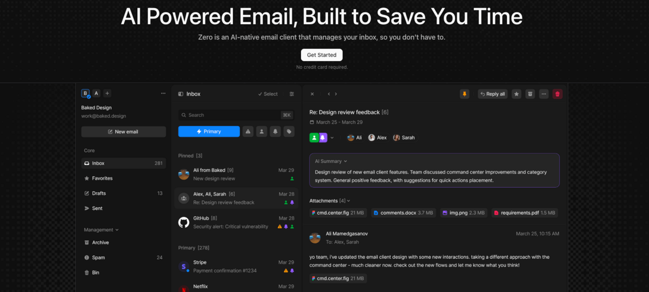 Zero is an AI native email client that manages your inbox, so you don't have to.