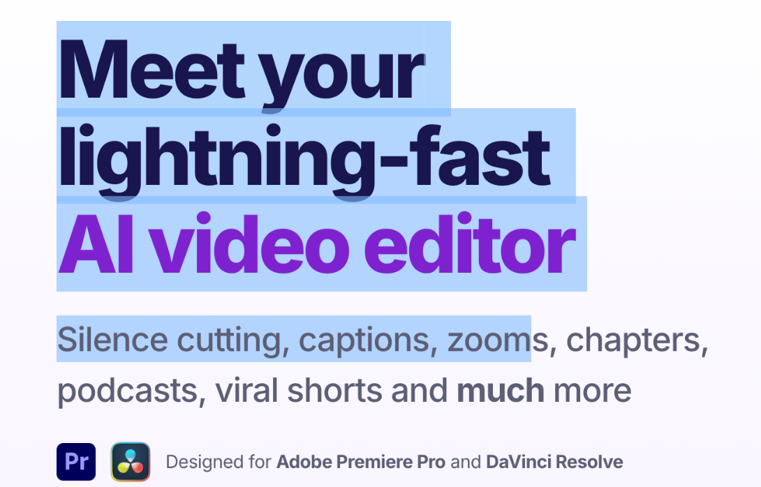 • Auto-cut silences, bad takes, and filler from long recordings