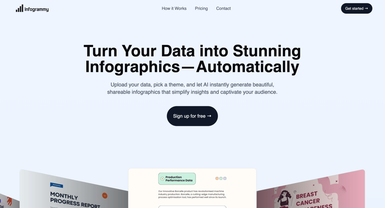 Transform your data into stunning, shareable infographics in seconds with Infogrammy. Harness the power of AI for effortless data visualization, storytelling, and business insights.