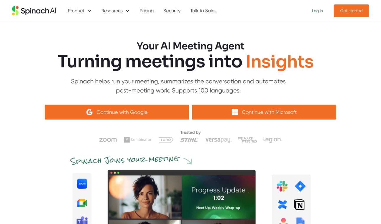 Spinach helps run your meeting, summarizes the conversation and automates post-meeting work.