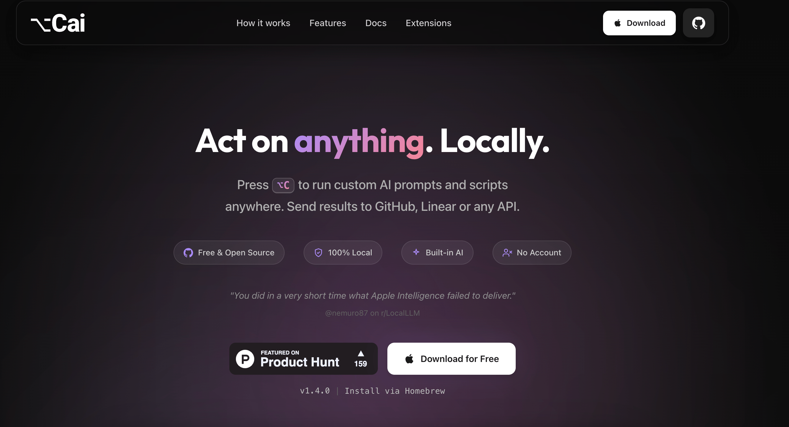 Cai. A local macOS AI assistant you summon with ⌥C.
