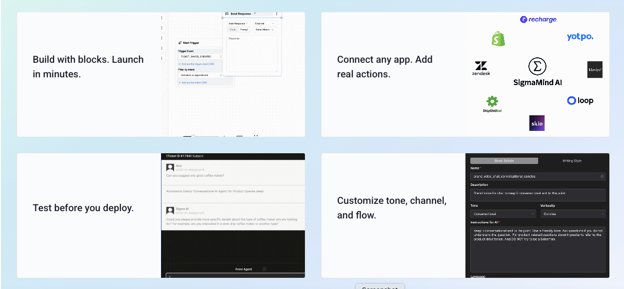 With SigmaMind AI, you can create and launch production-ready AI agents in minutes:
